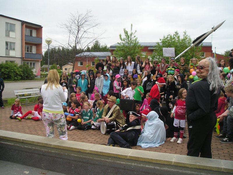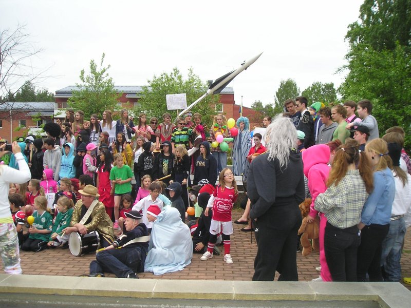 Vidsels skola har karnevalståg till torget.