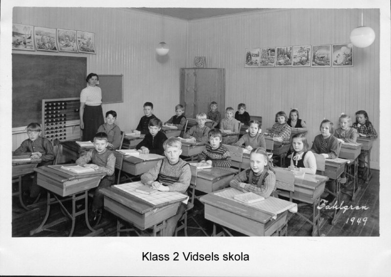 Vidsels Folkskola. Elever födda 1943 och årsklassen är 4 eller 5.