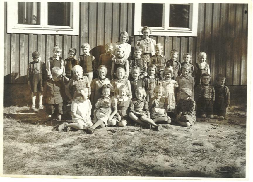 Klass 1 och 2 år 1945. Lärare: Ingeborg Eriksson och fröken Lidström.
