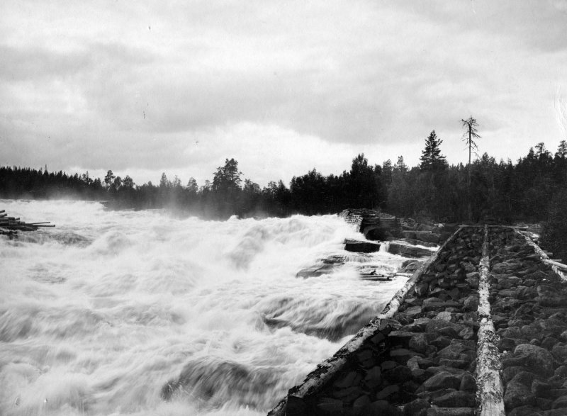 En unik bild av Storforsen troligen 1901. En originalbild från bygdens första fotograf Fia Kaarle/Engelmark