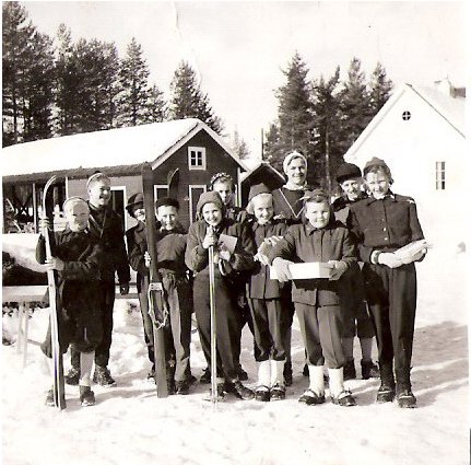 Enligt Nisse Höglund är de två längst till vänster svåra att identifiera, men den ene av dem bör vara Yngve Engström som mest jobbade i Manjärvsskolan.